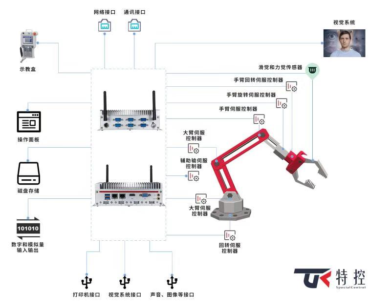 由于采摘機(jī)器人所處的環(huán)境相對(duì)復(fù)雜多變,對(duì)控制系統(tǒng)硬件方面的要求更為嚴(yán)苛,普通的硬件是無(wú)法勝任的,只有工業(yè)級(jí)的計(jì)算機(jī)硬件才能為工業(yè)機(jī)器人提供專業(yè)硬件方案支持。特控推出的新一代嵌入式工控機(jī),支持第五代/六代i7/i5/i3處理器,支持VGA、 HDMI顯示接口和雙網(wǎng)口,并提供多種通訊接口等接口。另外此款嵌入式工控機(jī)外觀結(jié)構(gòu)緊湊小巧,節(jié)省空間。銀白紅色相搭顯得時(shí)尚大氣,全密封鋁合金箱體,大面積鋁鰭散熱,無(wú)風(fēng)扇設(shè)計(jì)??蛊茐哪芰?qiáng),適應(yīng)寬溫,能在粉塵大、濕度高等惡劣環(huán)境條件下穩(wěn)定運(yùn)行,可靠性高。